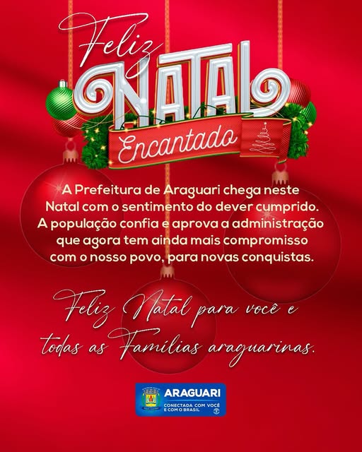 A prefeitura de Araguari deseja a todas as famílias araguarinas que o espírito natalino traga paz e serenidade.