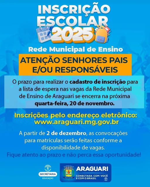 Atenção pais, mães e/ou responsáveis